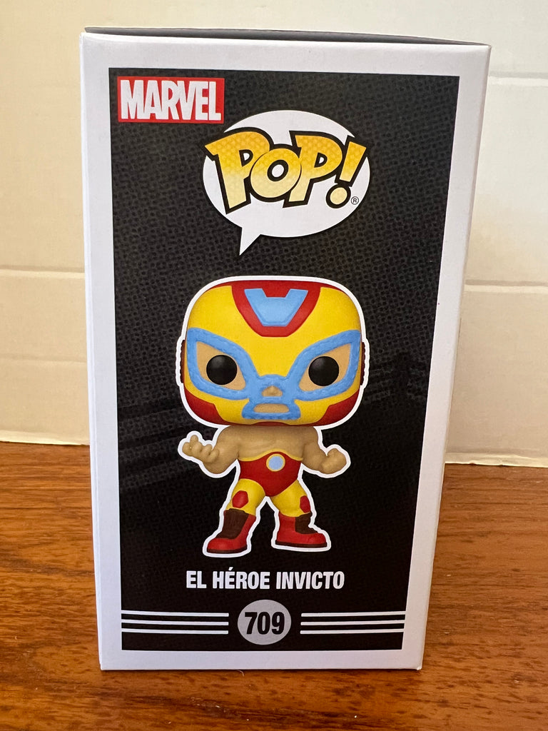 Funko POP! El Heroe Invicto 709 Iron Man Lucha Signed Mick Wingert Beckett COA